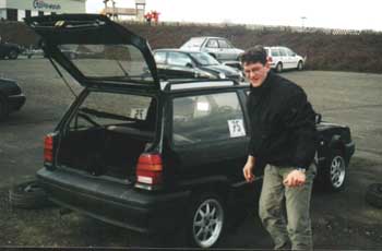 Tja, nun stand ich da und wusste eigentlich nix. Wie geht es jetzt weiter? Wir haben dann erst einmal den VW-Polo im Fahrerlager abgestellt und bei einer Eiseskälte die ALU-Felgen montiert. Danach zur Anmeldung und die Startnummern besorgt. Ich war für die Klasse SE16 bis 1400 ccm angemeldet. Danach konnten wir uns erst einmal in Ruhe die schon laufenden Rennen aus der Entfernung anschauen. Ich musste zugeben, dass ich immer nervöser wurde, zumal ich noch nie vorher um Pylonen gefahren bin, wo denn auch? Aber wie ich in der Vergangenheit es auch schon erlebt habe, ist die Motorsportfamilie eine sehr kontakt- und auch hilfsbereite "Familie". Den andere Mitbewerber gaben mir theoretische Tips, wo man wie fahren kann. Das hilft schon eine Menge weiter. Wie der Zufall es wollte, habe ich auch Benjamin Rochlitz getroffen, den ich aus dem Forum von EWO "kennen gelernt" habe. Er und sein Vater haben mich nach der Technischen Abnahme mit Material, Werkzeug und Arbeitskraft tatkräftig unterstützt, als es galt ein kleinen technischen Mangel an der Batterie zu beseitigen und den Luftruck meiner Reifen richtig einzustellen. Ferner haben die beiden mir viele Tips bezüglich meines Polos gegeben. Solche Hilfsbereitschaft an so einem Tag hilft einem echt weiter. Dann war es soweit, gegen 13.30 Uhr durfte ich das erste Mal fahren. Nun gut, Helm auf, anschnallen und los geht’s. Tja, nun gab es kein zurück mehr, und ich stand auch noch als erster in der Reihe. Es wurde für jede Veranstaltung jeweils ein Probelauf und 2 Wertungsläufe gefahren. Von Runde zu Runde wurde ich mutiger, was man auch an den Zeiten später sehen konnte. Ich meine das ich insgesamt 6 Strafsekunden bekommen habe, für ein Hütchen und ein Hindernis, welches ich falsch überfahren habe. Was soll ich sagen, es hat einfach sehr, sehr viel Spaß gemacht. Eigentlich so, wie ich mir das vorstellt hatte. Was mich sehr gewundert hat war, dass man mit einem Polo mit 55 KW schnellere Zeiten fahren kann als ein Kadett GSI 1,8 ltr mit wesentlich mehr PS als mein Fahrzeug.