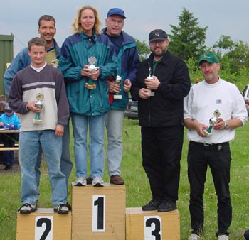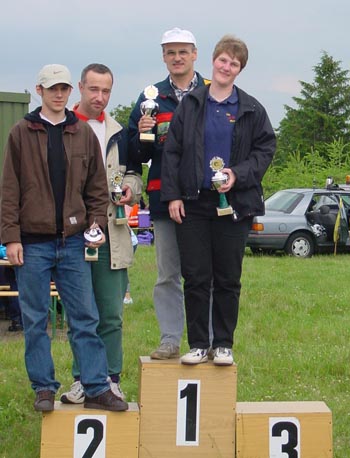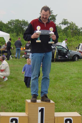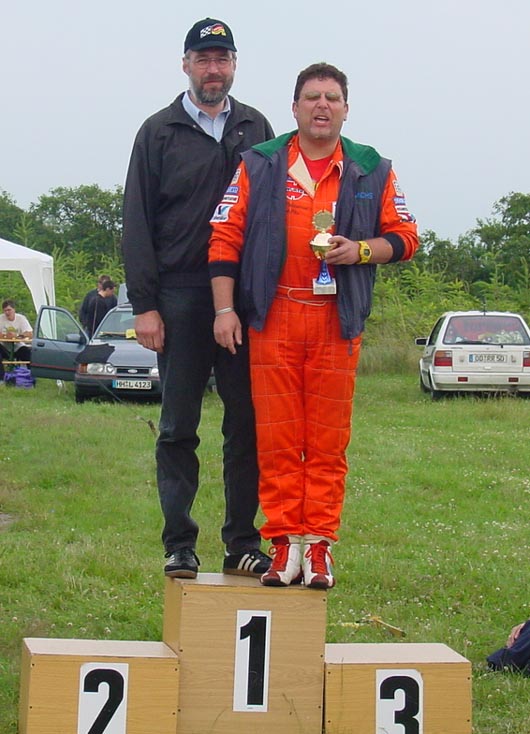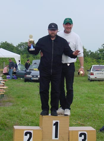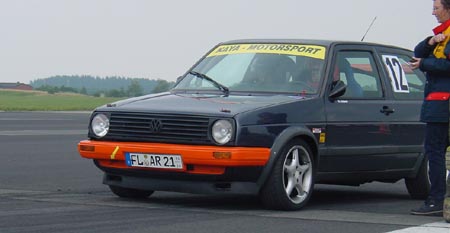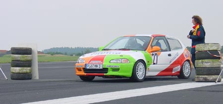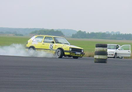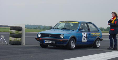 Häßlichkeiten in Sachen Belagwechsel aufweisen. 54 Teams reisten an, um Punkte zu sammeln und vor allem Spaß zu haben. Morgens entschieden sich die meisten Teams für Regenreifen, da es mächtig naß war, mußten aber über die zeit feststellen, daß Trockenreifen insgesamt wohl besser gewesen wären. Erstens endete die feuchte Zeit nach WP2 und der Gripp auf der schwarzen Landebahn ist derart mächtig, daß man wahrscheinlich auch mit Ölfilm noch hätte zügig fahren könnte. So war es kein Wunder daß viele Reifen ihren letzten Tag erlebten. Als noch brauchbar erwiesen sich die GS-Mischung der Bridgestone RE540: im Nassen perfekt, im Trockenen noch fahrbar. Neben einigen Landeleuchten die abgeschossen wurden (glücklicherweise ohne wirklich schlimme Defekte) gab es eigentlich wenig Probleme, mal abgesehen von einigen organisatorischen Patzern. Ärgerlich waren die Ausfälle von Helmut Rußbüldt, der seinen Allrad- BMW bereits am Vormittag nach vielversprechendem Auftakt mit Schaden an der Gelenkwelle abstellen mußte, und auch Marco Hamer der sich in Führung liegend einem kuriosen Reifenplatzer unterwerfen musste. Die Freude von Nils Heitmann und Michael Mühlefeld war gleichzeitig das Erstaunen der Konkurrenz: Er belegte mit seinem Polo den 6.Gesamtrang bei beiden Veranstaltungen. Das der EWO-BMW unter seinem Herrn Eckehard Wolter der Konkurrenz kaum eine Möglichkeit zum Angriff gab, freute neben seiner Werkstatt auch den Co-Piloten Rainer Zimmermann. Er nahm die zwei Gesamtsiege als nettes Geburtstagsgeschenk.