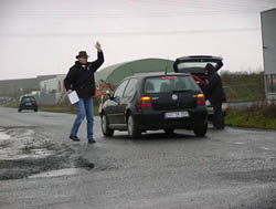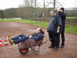 bekam und der Beifahrer in der Schubkarre sitzend die Richtung