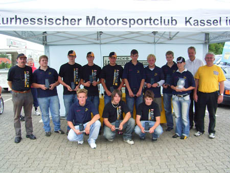 Mittlerweile wird die beliebte Nachwuchsserie „ADAC-Youngster-Slalom-Cup“ bundesweit nach dem gleichen Reglement ausgetragen. Am Ende der Saison treten dann die rund 100 besten der 16-23jährigen Youngster im Bundesfinale an, um in zwei Altersklassen in der Einzelwertung sowie in der Mannschaftswertung die Sieger zu ermitteln. Dieses Event wird im Oktober im bayerischen Kempten stattfinden. Als Vorbereitung auf dieses Spitzenevent ließen die Serienkoordinatoren der benachbarten ADAC-Regionalvereine Ostwestfalen-Lippe (OWL) und Hessen-Thüringen(HT) ihre Youngster an zwei aufeinanderfolgenden Wochenenden jeweils zum „Freundschaftsspiel“ in Kassel und Paderborn antreten. Dabei mußten die jungen Ostwestfalen mit den Renault-Clio des ADAC-HT ebenso klarkommen wie die Hessen mit den VW-Polo des ADAC-OWL, beide Sportgeräte mit 75 PS zwar identisch motorisiert, jedoch unterschiedlich im Handling. Neben den Einzelwertungen der jeweiligen Cups wurde aus der Addition der insgesamt 4 Wertungszeiten aus Kassel und Paderborn eine Gesamtwertung erstellt; die jeweils 800 Meter langen Strecken ermöglichten zwischen den Pylonen jeweils vergleichbare Fahrzeiten um eine Minute. Dies bedeutet einen „Schnitt“ von knapp 50km/h; Pylonenfehler werden mit 3 Sekunden Zeitstrafe gewertet und sollten, wie sich zeigen wird,bei den kurzen Laufzeiten die Wertung erheblich beeinflussen. In der Altersgruppe A der